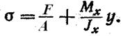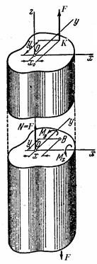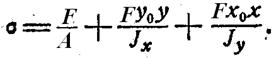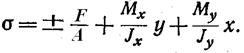 т.о. внецентренное растяжение – сжатие оказывается родственным косому изгибу, но в сечении кроме Мx М y действует еще N = F.