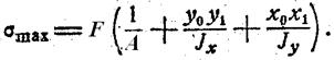 Наибольшие напряжения возникают в точке с координатами x1 y1 наиболее удаленной от нейтральной линии: