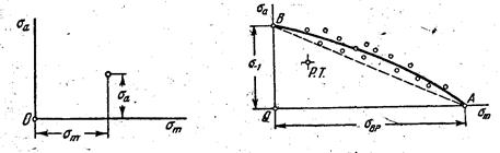 ниже предельной прямой АВ деталь может в условиях циклических напряжений работать неограниченно долго, если выше, то деталь разрушается после некоторого числа циклов.