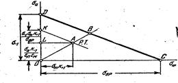 Для опрделения запаса усталостной прочности на диаграмме σ т- σ а откладывают рабочие значения σ т и σ а с учетом всех поправок. Затем соединяют рабочую точку с началом координат и продолжают до пересечения с диаграммой. Значение коэффициента запаса опрделяют графически, как отношение: пr =