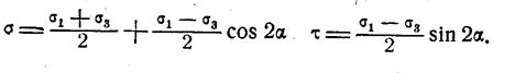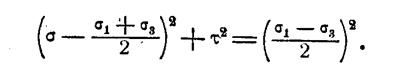Если исключить из этих уравнений угол α получим уравнение окружности в координатах σ – τ.