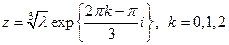 б) Так как коэффициенты уравнения вещественны, то две траектории зеркально симметричны относительно мнимой оси, а по формулы Виета для свободного члена следует, что третья траектория лежит на отрицательной части вещественной оси.