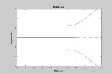 Пр Следующая последовательность команд позволяет построить корневой годограф из последнего примера. >> p=[1]; q=[1 1 2 0]; sys=tf(p,q); rlocus(sys)