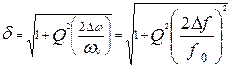 При изменении частоты источника сигнала в ту или иную сторону от резонансной частоты (появляется расстройка ∆f) ток в контуре уменьшается и соответственно уменьшается коэффициент передачи напряжения контура. Отношение добротности контура к коэффициенту передачи напряжения при заданной расстройке ∆f называется избирательностью контура и обозначается через δ.