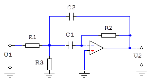 Рис.12.10. Принципиальная схема ФВЧ 2-го порядка с ООС