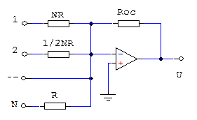 Рис.14.8. Взвешивающая резистивная матрица с операционным усилителем