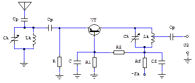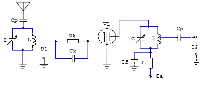 Рис.16.6. Принципиальная схема УРЧ на лампе, включенной по схеме с ОС