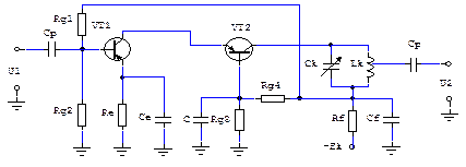 Избирательная система в первом каскаде отсутствует, так как она сильно шунтировалась бы большой входной проводимостью второго каскада и обладала бы низкими избирательными свойствами. Первый каскад оказывается нагруженным на большую входную проводимость второго каскада. Поэтому коэффициент усиления по напряжению КU1 первого каскада близок к единице и каскад обладает большим запасом устойчивости:
