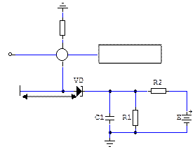 2. Устойчивое положение рабочей точки обеспечивается сопротивлением резисторов делителя, при которых нагрузочная прямая по постоянному току пересекает ВАХ диода только в одной точке.
