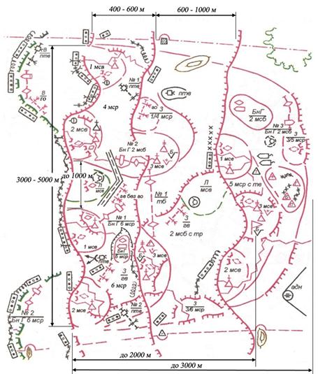 Используя офицерскую линейку, обведите цветными карандашами все тактические условные знаки на схеме.