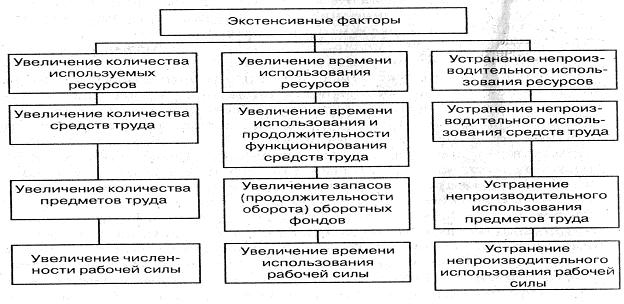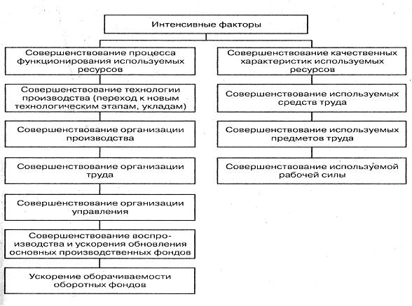 Интенсификация – это процесс, особый способ развития, опирающийся на научно-технический прогресс, целью и результатом которого является повышение результативности производства и увеличение на этой основе выпуска продукции. Экстенсивный способ развития производства предполагает увеличение выпуска продукции без повышения степени отдачи применяемых в производстве трудовых и материальных ресурсов (т.е. без повышения результативности), а только за счет их абсолютного увеличения.