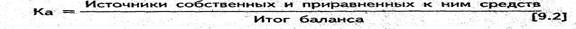Коэффициент автономии (Ка) показывает долю источников собственных средств в общей стоимости источников средств предприятия и определяется: