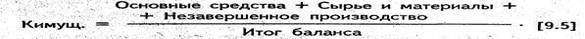 Для характеристики структуры имущества предприятия используют коэффициент имущества производственного назначения, который показывает долю реальных активов, определяющих производственные возможности предприятия, и определяется по формуле: