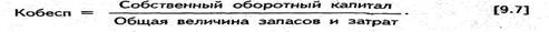 Финансовая устойчивость предприятия характеризуется также состоянием его оборотных средств, которое находит свое отражение в коэффициенте обеспеченности материальных запасов собственным оборотным капиталом (Кобесп). Коэффициент обеспеченности запасов и затрат собственными источниками формирования характеризует долю собственных оборотных средств, направляемых на формирование запасов и затрат: