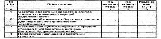 В ходе анализа уровня финансовой устойчивости и платежеспособности следует рассчитать сумму излишка (недостатка) оборотных средств по сравнению с их нормальным уровнем, которая необходима для сохранения финансовой устойчивости при фактически сложившейся задолженности. Для этого составляют таблицу (табл. 9.3).