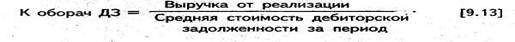 Коэффициент оборачиваемости дебиторской задолженности показывает, сколько раз в среднем в течение периода происходит превращение средств в расчетах в денежную наличность: