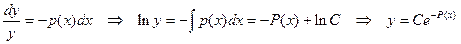 . После сокращения получаем уравнение с разделяющимися переменными для нахождения