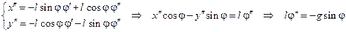- угол его отклонения от положения равновесия в момент времени. Равнодействующая этих сил направлена по касательной к маятнику и потому второй закон Ньютона для него имеет вид