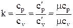 Отношение изобарной теплоемкости к изохорной, называется показателем адиабаты