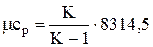 «mc»- удельная мольная теплоемкость, отнесенная к 1 кмоль газа, Дж/(кмоль×К)