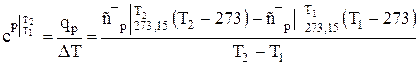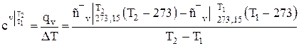 Учитывая, что теплоемкости двухатомных и многоатомных газов с ростом температуры увеличиваются, поэтому в расчетах определяют среднюю теплоемкость для заданного интервала температур T1…..Т2 по следующим формулам