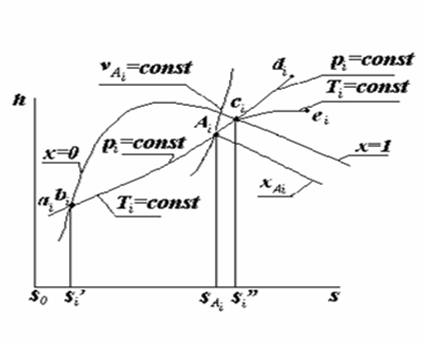 - удельная энтропия влажного пара, соответствующего состоянию в точке Аi,