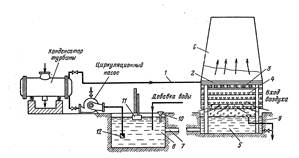Рис. 4.3. Принципиальная схема оборотного водоснабжения с капельными башенными градирнями: