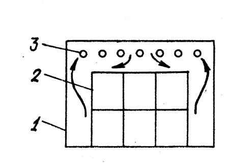 При батарейном охлаждении (рис.6.6) теплота отводится из камеры 1, где находится охлаждаемый объект 2, с помощью батарей 3 (пристенных, потолочных) при свободном движении воздуха у батарей. Недостатком батарейной системы охлаждения является большая неравномерность полей влажности воздуха и температуры в камере, а также недостаточная интенсивность теплообмена между воздухом и поверхностью приборов охлаждения.
