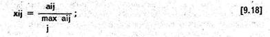 где xij — стандартизированные показатели состояния j-гo предприятия; aij — матрица (таблица) исходных данных; i — номера показателей (от 1 до n); j — номера предприятий (от 1 до т).