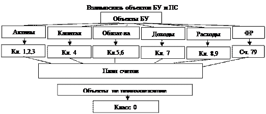 Счета в ПС сгрупированы в 9 кл., соответствующих объектам БУ. Забал. счета выделены в нулевой класс.