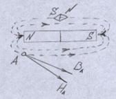 Направление вектора Н (рис.3-5) для изотропных сред совпадает с вектором В и определяется касательной, проведенной в данной точке поля (точка А) и соловой линии. Напряженность связана с магнитной индукцией соотношением