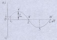 3.Мгновенной значение тока i, напряжения u, ЭДС e – значение этих величин в произвольный момент времени, например, времени t, мгновенное значение тока i (см. график).