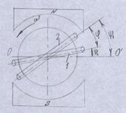 Источником силовых линий магнитного поля является постоянный магнит NS, между полюсами которого расположен цилиндрический ротор (вращающаяся часть). Ротор, с целью уменьшения потерь на вихревые токи набран из отдельных тонких листов электротехнической стали, изолированных лаковой пленкой друг от друга. Полюсам придается такая форма, что в воздушном зазоре между ними и ротором магнитная индукция изменяется по закону синуса