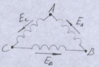 Поэтому, при соединении потребителей по схеме треугольника его фазное напряжение всегда равно линейному напряжению генератора, не зависит от величины и характера нагрузки, и т.к. напряжение генератора с помощью автоматических регуляторов поддерживается постоянным, то фазное напряжение потребителя также величина неизменная. Как видно из схемы соединения генератора три фазы его образуют замкнутый контур с ничтожно малым сопротивлением. Поэтому, чтобы исключить перегрев обмотки, возникновение короткого замыкания необходимо, чтобы eAB+eBC+eCA было всегда равно 0. Поэтому, опасно неправильное соединение обмотки генератора (попутали начало с концом), что приведет к короткому замыканию.