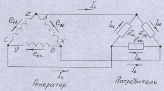 § 5.4. Соединение обмоток генератора и потребителя треугольником.