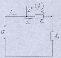 I – измеряемый ток; IА – ток, идущий через амперметр с сопротивлением RA; RШ – сопротивление шунта; RН – нагрузка.