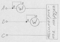 Рис.6-10. Схема включения ваттметров в трех проводную трехфазную цепь при несимметричной нагрузке.