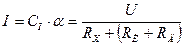 Сопротивление (RИ+RД) постоянно. Если отношение U/CI также будет постоянным, то угол a зависеть только от измеряемого сопротивления RX и на шкале омметра можно нанести его значения.