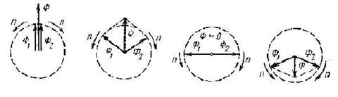 Рис.9-16. Разложение пульсирующего магнитного потока на два.