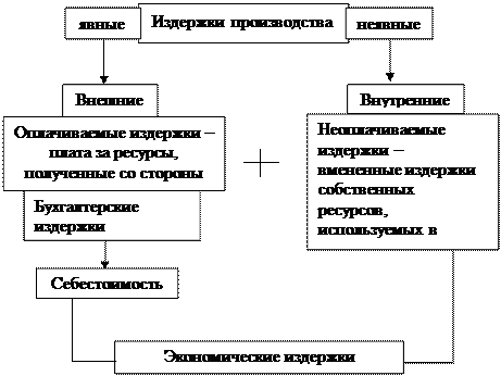 Однако подобное определение неполно и требует некоторых оговорок. Дело в том, что часто не все ресурсы реально оплачиваются. Часть из них предприятие может использовать как бы «бесплатно». Если предприятие располагает собственными (принадлежащими ему) помещением и денежным капиталом, то использование этих ресурсов не потребует от него прямых денежных расходов.