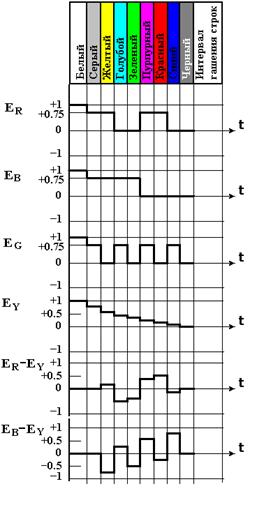 Яркостной сигнал Ey = rER + gEG + bEB может быть передан как сигнал яркости Ey и цветоразностные сигналы ER – Y = ER – Ey и EB – Y = Eb - EY