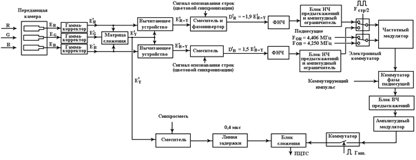 Коммутатор – подавления сигналов цветности на время кадровых и строчных синхроимпульсов.