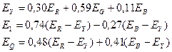 Разделение на яркостной и цветоразностные сигналы осуществляется по формулам: