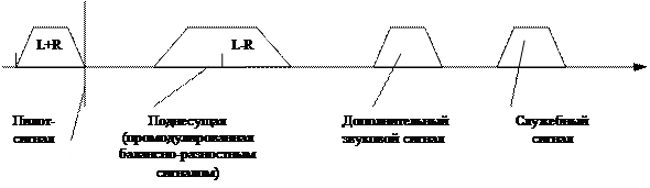 Система с двумя несущими, вторая из которых цифровая (NICAM) (Англия). Первая несущая ЧМ (B/G – 5,5 и 5,85 МГц; I – 6 и 6,552 МГц).