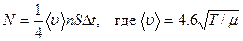 водород вытекает из тонкостенного сосуда в вакуум. Принять температуру, при которой происходит эффузия, равной Т =300 К, давление в сосуде р =10-6атм, площадь отверстия S =0.1 мм2.
