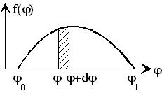 представлен пример графического изображения плотности вероятности. Площадь заштрихованной полоски на рисунке равна вероятности dP(j) нахождения величины j в интервале [j; j+dj]. Площадь под всей кривой f(j) есть вероятность нахождения величины j в интервале [j0;j1], которая всегда постоянна, равна 1 или 100% и определяет условие нормировки плотности вероятности.