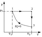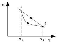2.7. Определить КПД цикла, изображенного на рис.11. Переход 2-1 адиабата. Известны V1, V2, T1 и Cv=const.