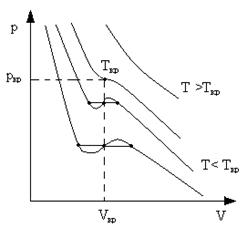 Соответствующие этой точке давление pk, объем Vk и температура Tk также называются критическими.