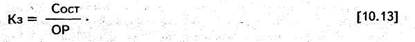 б) коэффициент закрепления, или коэффициент загрузки оборотных средств (Кз), то есть сумма оборотных средств, приходящаяся на один рубль реализованной продукции, который определяется по формуле:
