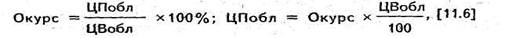 где Окурс — курс облигации; ЦПобл — покупная цена облигации; ЦВобл — цена выкупа облигации (номинальная стоимость).